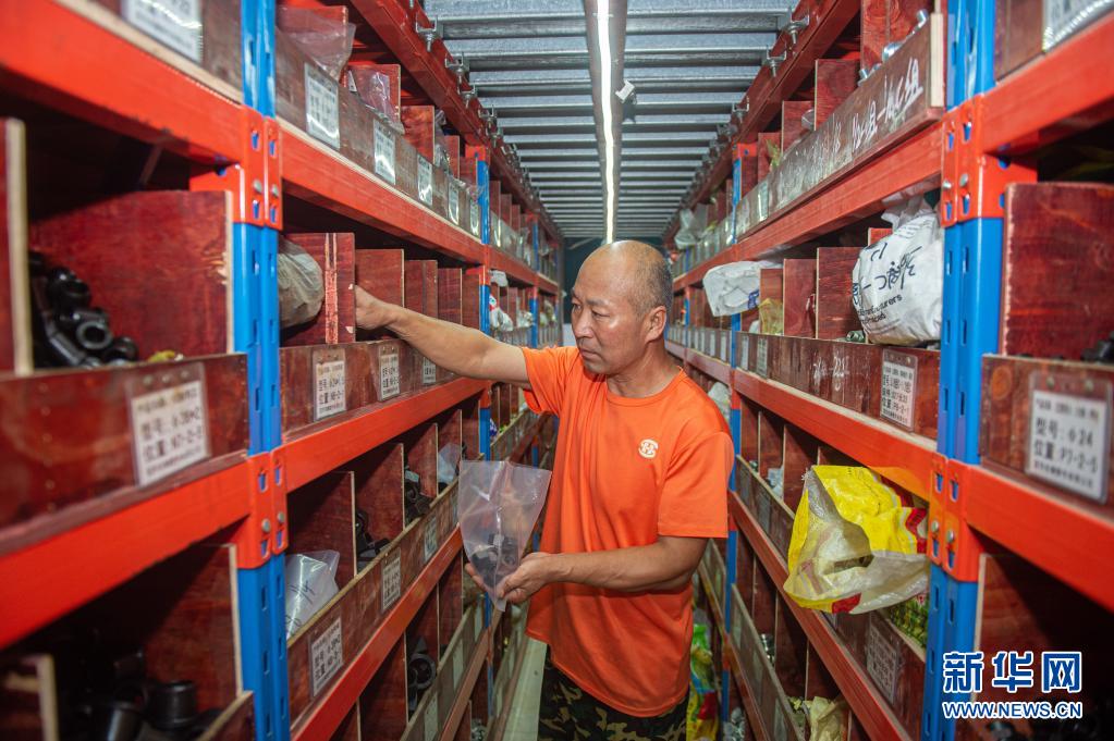 8月12日,在店口镇华东汽配水暖城,商户挑选零件准备发货。
