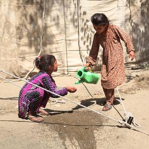 这是8月11日在阿富汗首都喀布尔拍摄的因战乱逃离家园的儿童。