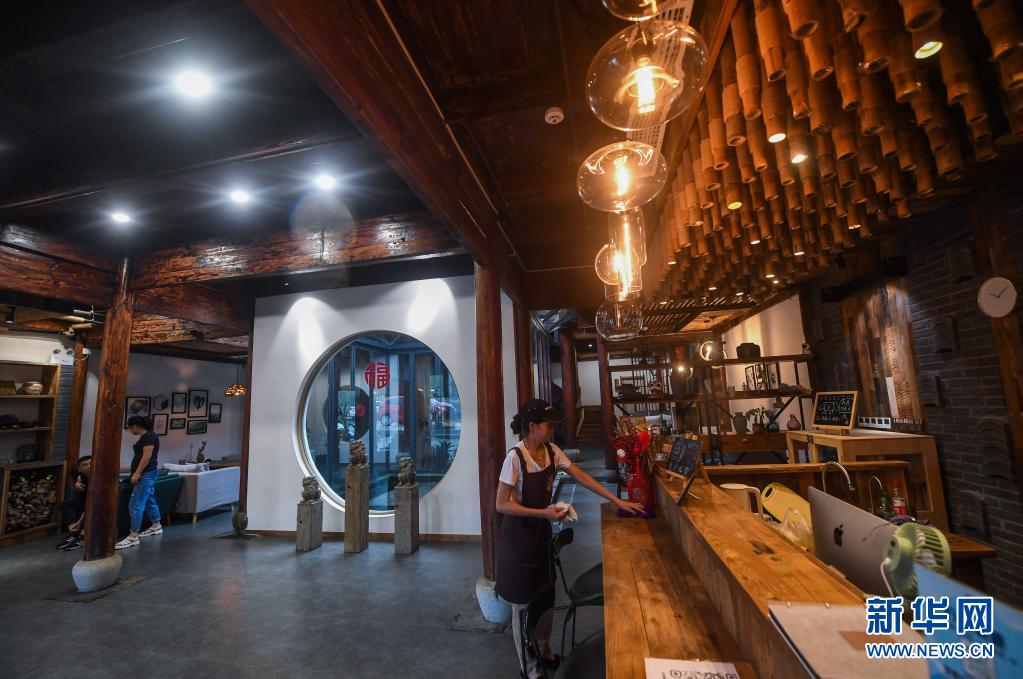 这是杭州市临安区湍口镇的一家特色民宿(8月13日摄)。