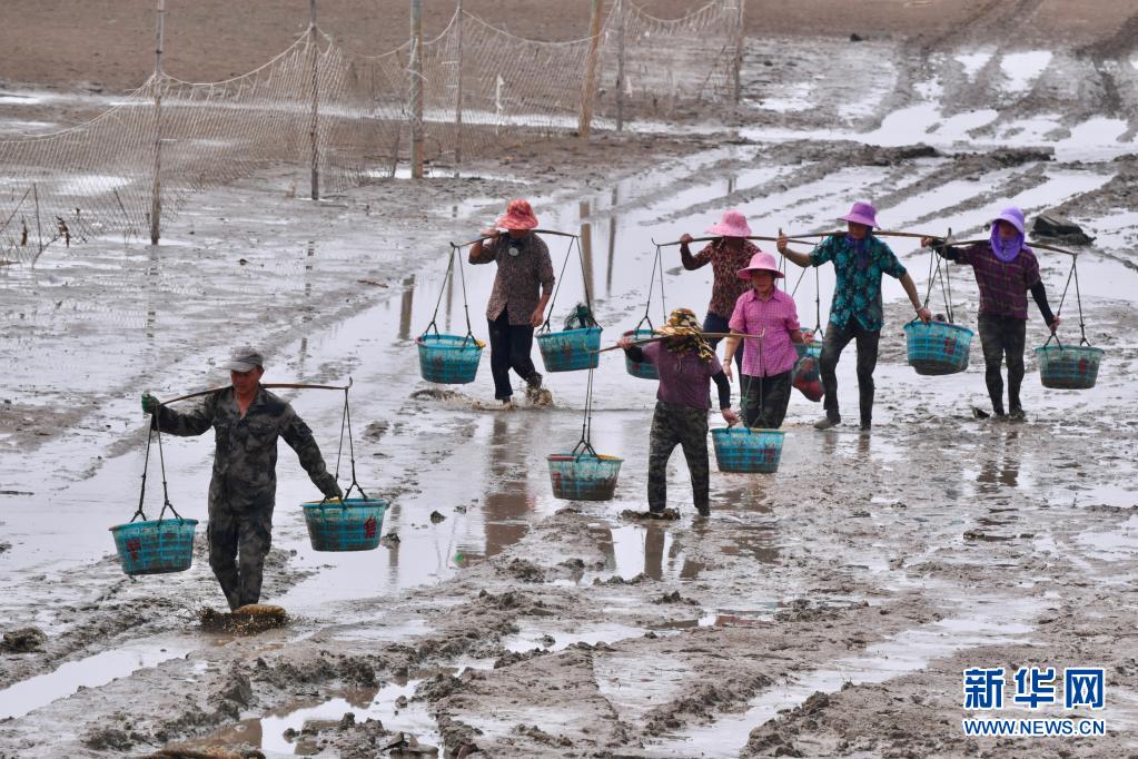 时下,福建省连江县浦口镇中麻村2000多亩浅海缢蛏迎来收获旺季。渔民趁着潮落间隙,在滩涂中收获缢蛏。