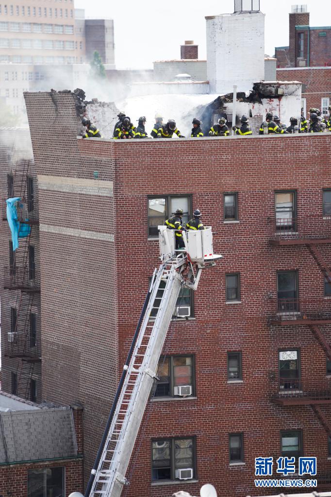 8月10日,消防员在美国纽约发生火灾的居民楼工作。