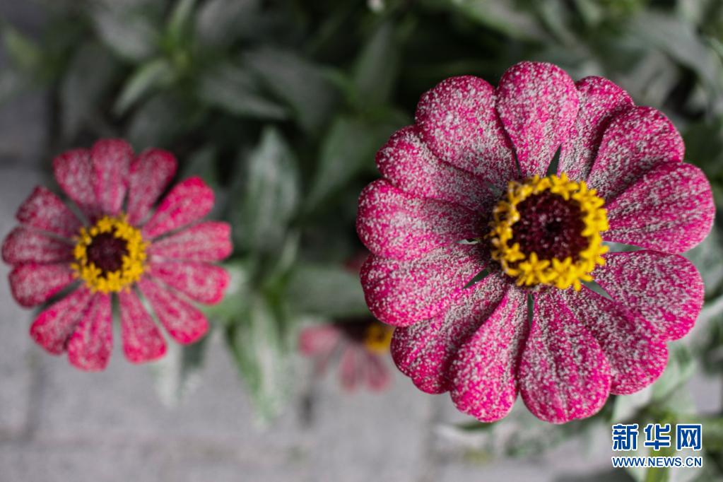 这是8月10日在印度尼西亚中爪哇省拍摄的被默拉皮火山喷出的火山灰覆盖的花瓣。