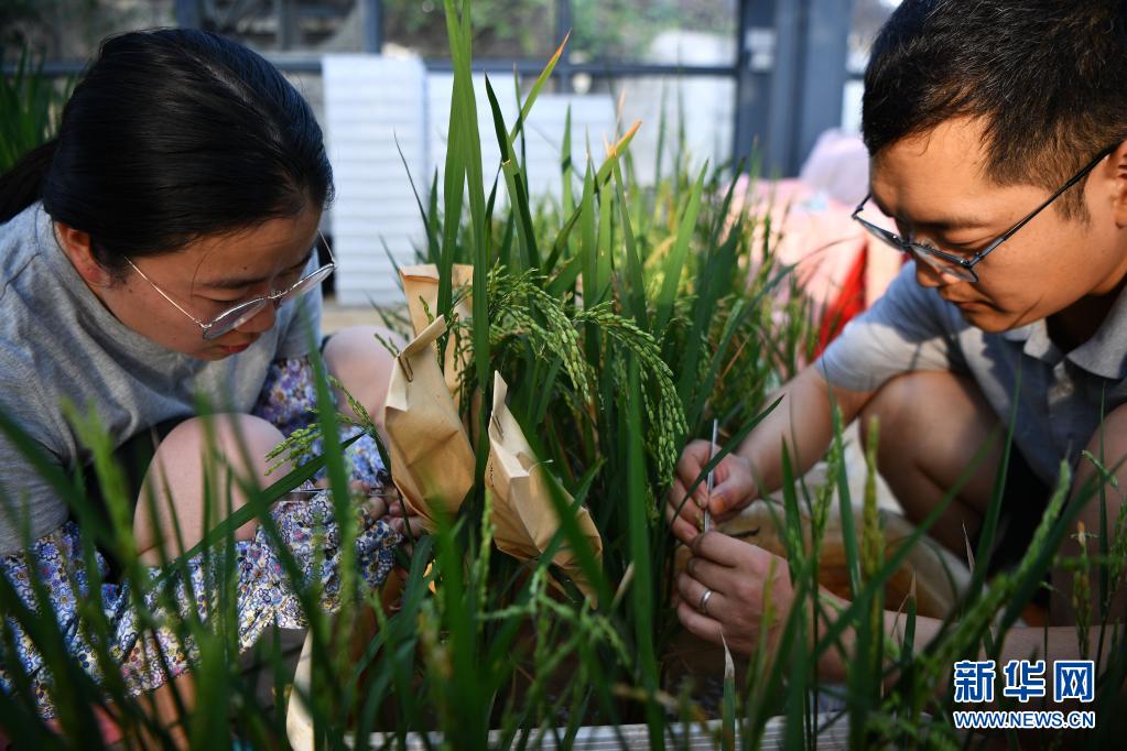2020年1月11日,科研人员在位于海南省陵水黎族自治县的华中农业大学水稻南繁基地温室内工作。新华社记者 郭程 摄