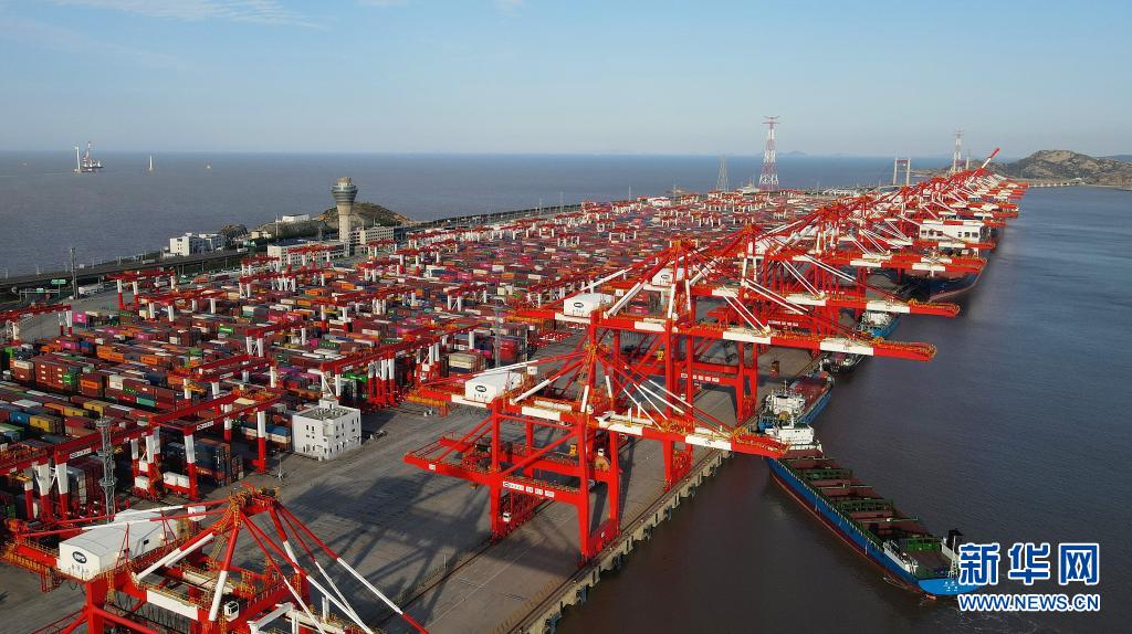 这是4月6日拍摄的上海洋山港四期自动化码头(无人机照片)。新华社记者 方喆 摄