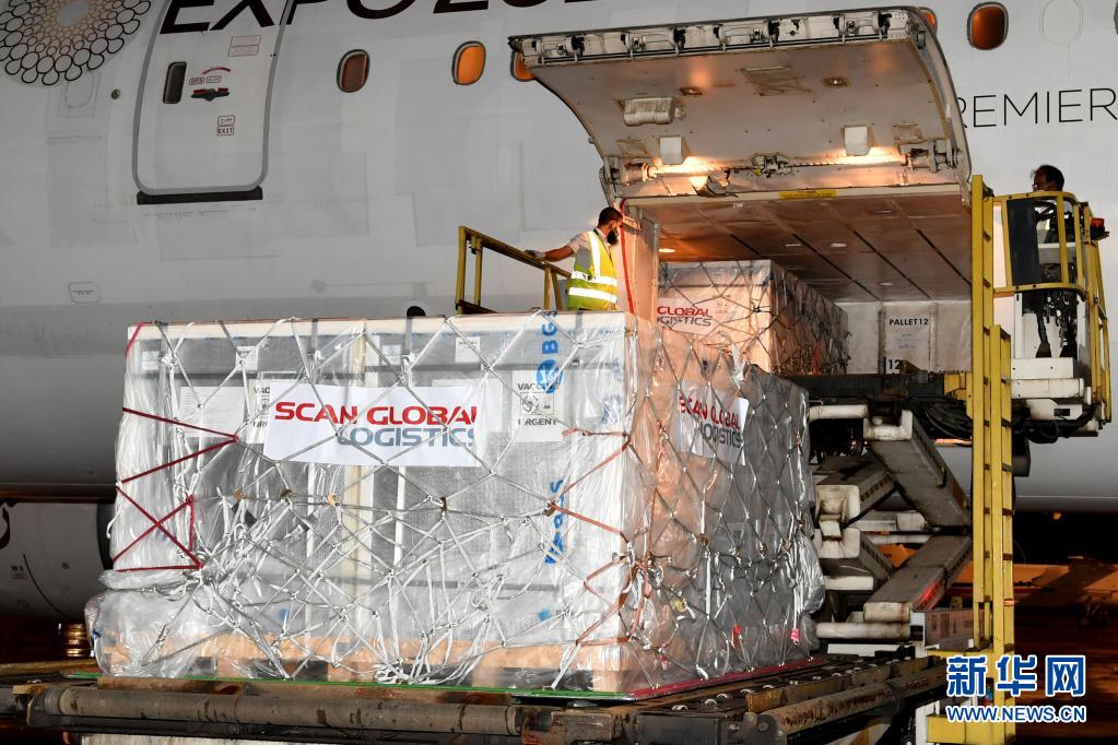 8月10日,在孟加拉国达卡机场,工作人员运送中国通过“新冠疫苗实施计划”供应孟加拉国的新冠疫苗。新华社发