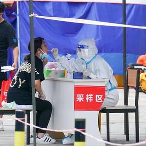 8月14日,市民在扬州市梅岭街道一处核酸检测点排队,准备进行核酸检测取样。