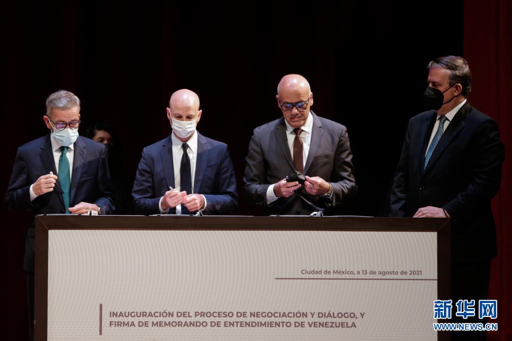 8月13日,委内瑞拉政府与反对派代表在墨西哥国立人类学博物馆举行的协商对话启动仪式上共同签署备忘录。