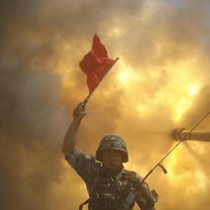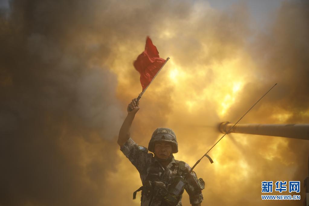 8月13日,在宁夏某合同战术训练基地,炮兵群集中火力对“敌”实施集火打击。