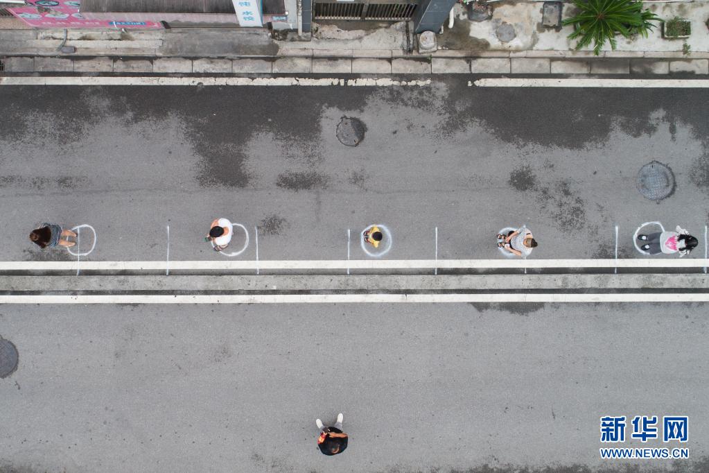 8月10日,在张家界市永定区官黎坪街道,居民排队等待做核酸检测(无人机照片)。