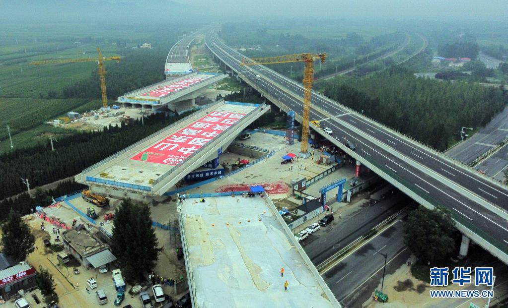 8月9日9时25分,由中铁四局集团承建的京台高速泰安至枣庄段改扩建项目跨京沪铁路双T构转体桥,经过60分钟逆时针旋转后,在空中实现精准对接,较计划工期提前1个月完成了双转体施工,为加快实现全线双向八车道通车奠定了坚实基础。