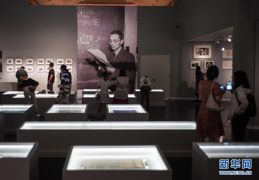 8月14日,观众在参观“栋梁——梁思成诞辰一百二十周年文献展”。