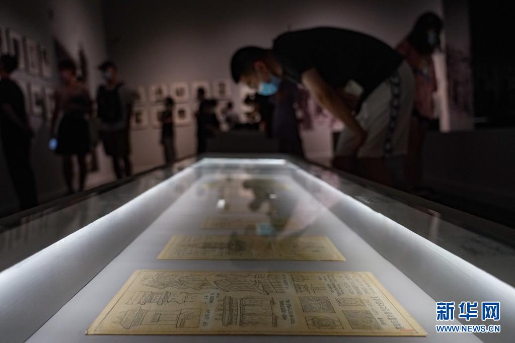 8月14日,观众在参观“栋梁——梁思成诞辰一百二十周年文献展”。