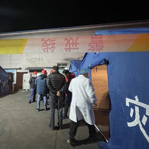 8月15日凌晨,救援人员正在事发煤矿井口开展救援工作。新华社记者 吴刚 摄