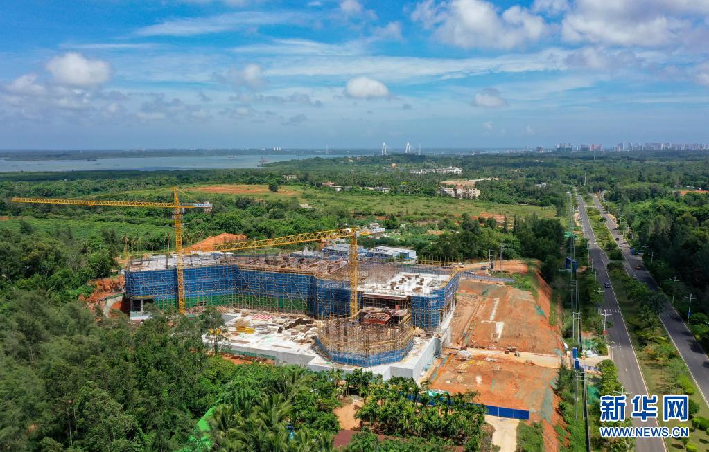 这是文昌国际航天城产业服务中心项目工地(8月14日摄,无人机照片)。