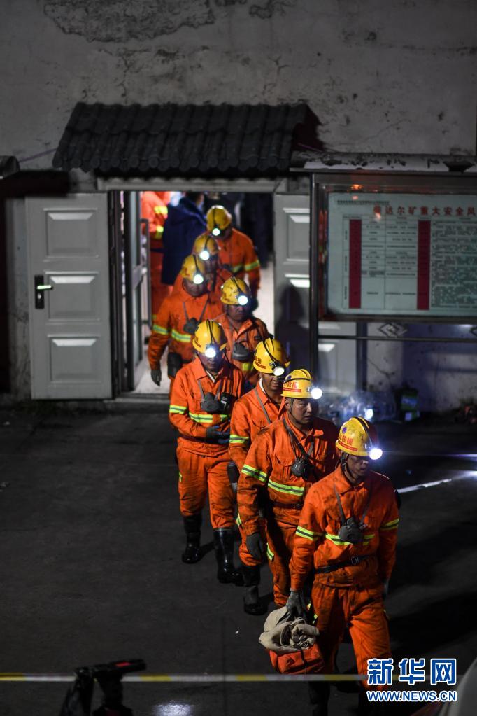 8月15日,消防队员从矿井入口处走出。