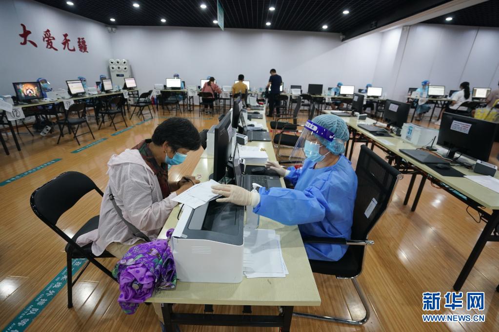 8月16日,在南京市秦淮区新冠疫苗集中接种点,市民在登记信息。