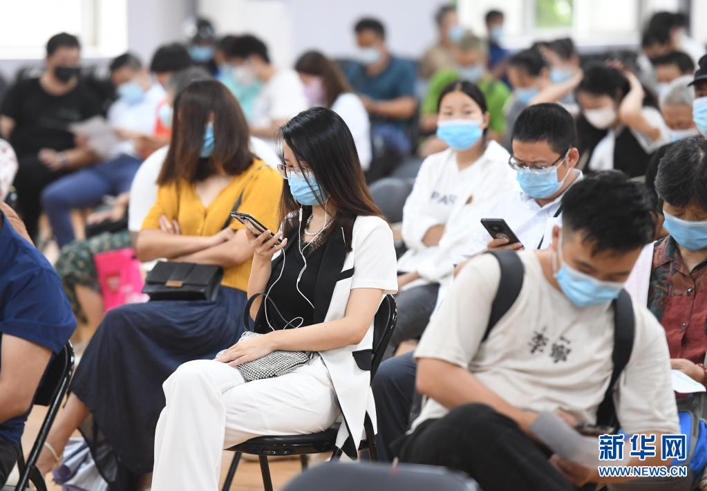 8月16日,在南京市秦淮区新冠疫苗集中接种点,市民接种新冠疫苗后留观。