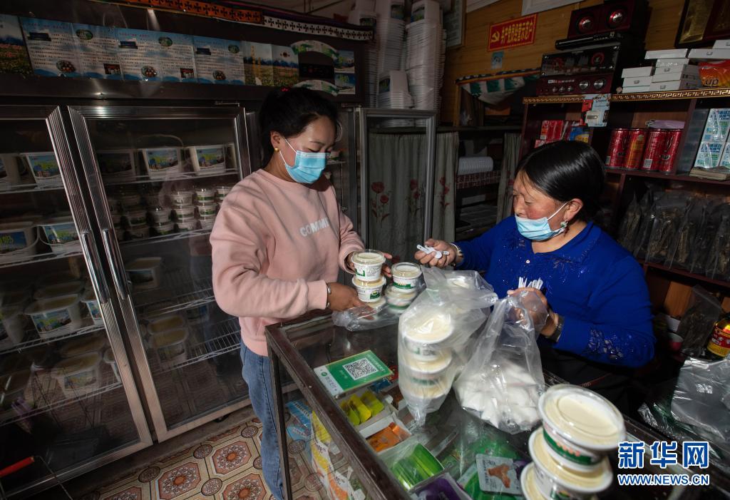 8月13日,在四川省阿坝藏族羌族自治州红原县刷经寺镇壤口村酸奶协会,顾客在购买牦牛酸奶。