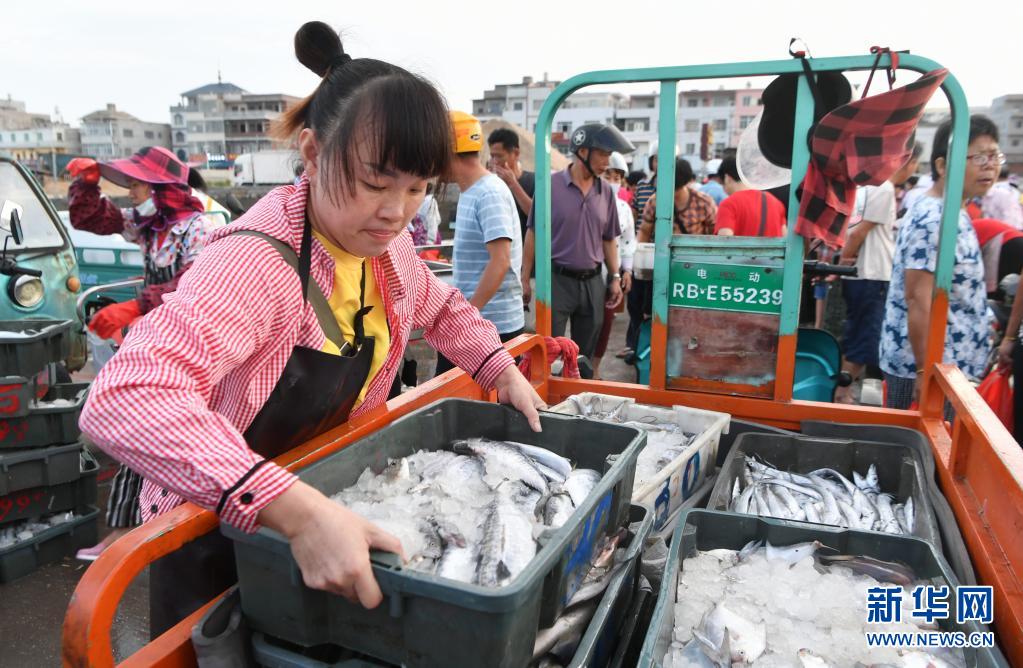 当日,福建省莆田市秀屿区平海镇平海一级渔港码头一派繁忙,渔民将开渔以来首批捕捞上来的新鲜海产品称重、出售,供应市场。
