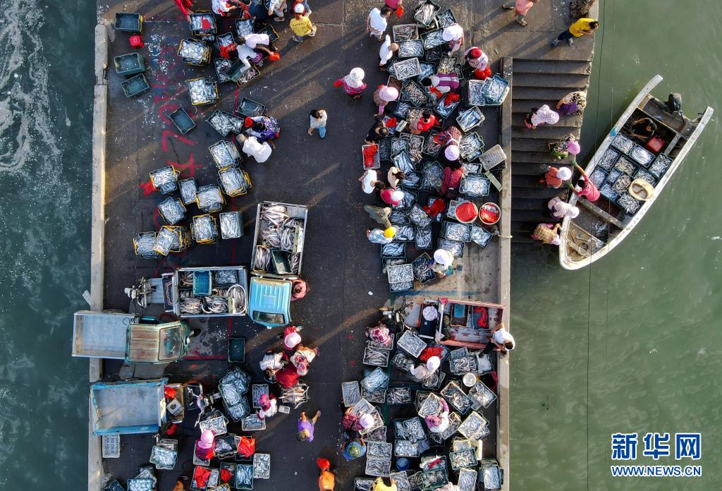 当日,福建省莆田市秀屿区平海镇平海一级渔港码头一派繁忙,渔民将开渔以来首批捕捞上来的新鲜海产品称重、出售,供应市场。