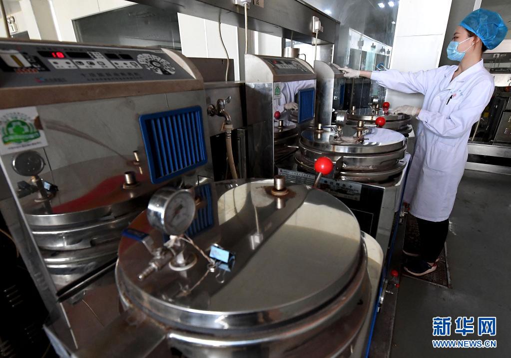 8月17日,在郑州市中医院煎药中心内,药师在调煎药机的参数。新华社记者 李安 摄