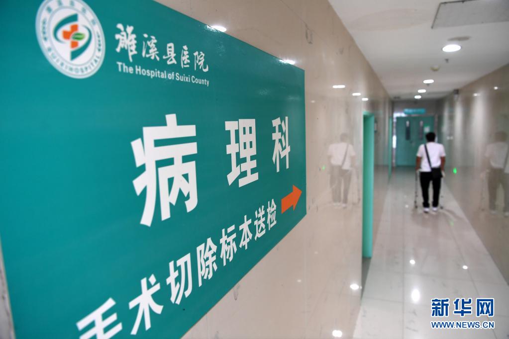 8月16日早晨,王雷到达濉溪县医院病理科准备上班。新华社记者刘军喜摄
