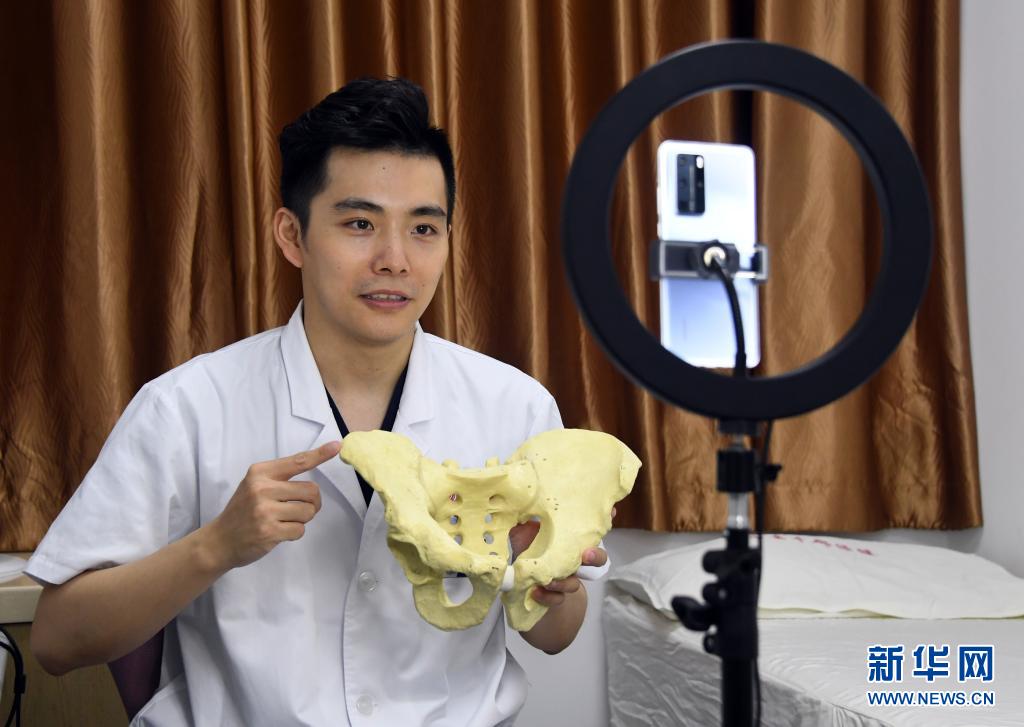 在北京市海淀医院,马元录制医学知识短视频(8月12日摄)。