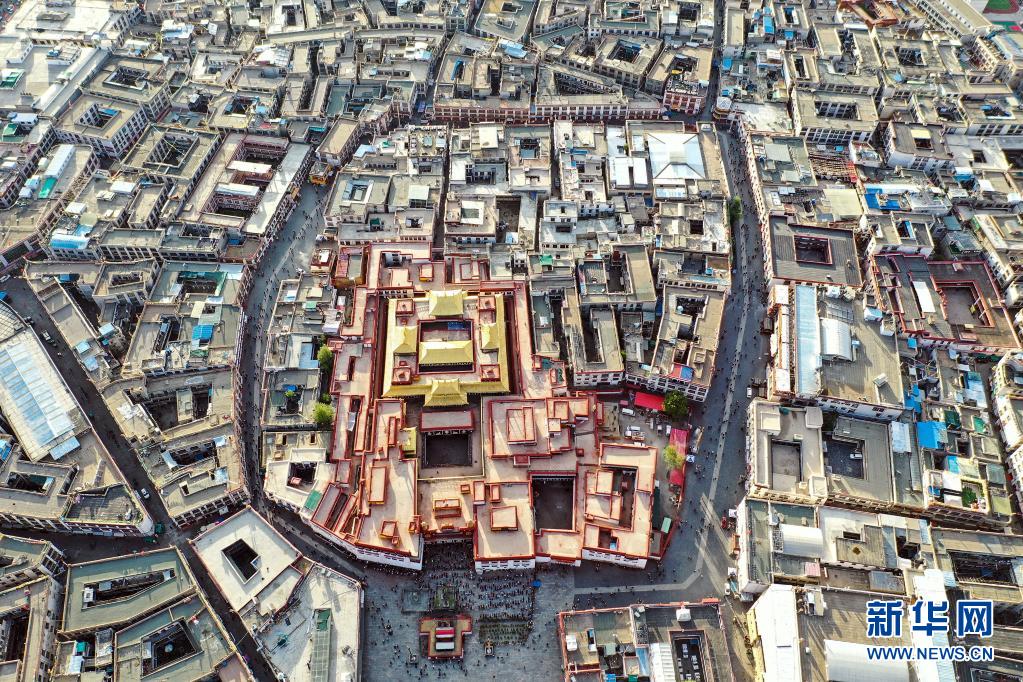 鸟瞰拉萨八廓街(无人机照片,2019年8月10日摄)。新华社记者 普布扎西 摄