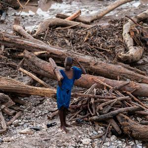 8月18日,海地莱凯的居民收集木材作为重建家园的材料。