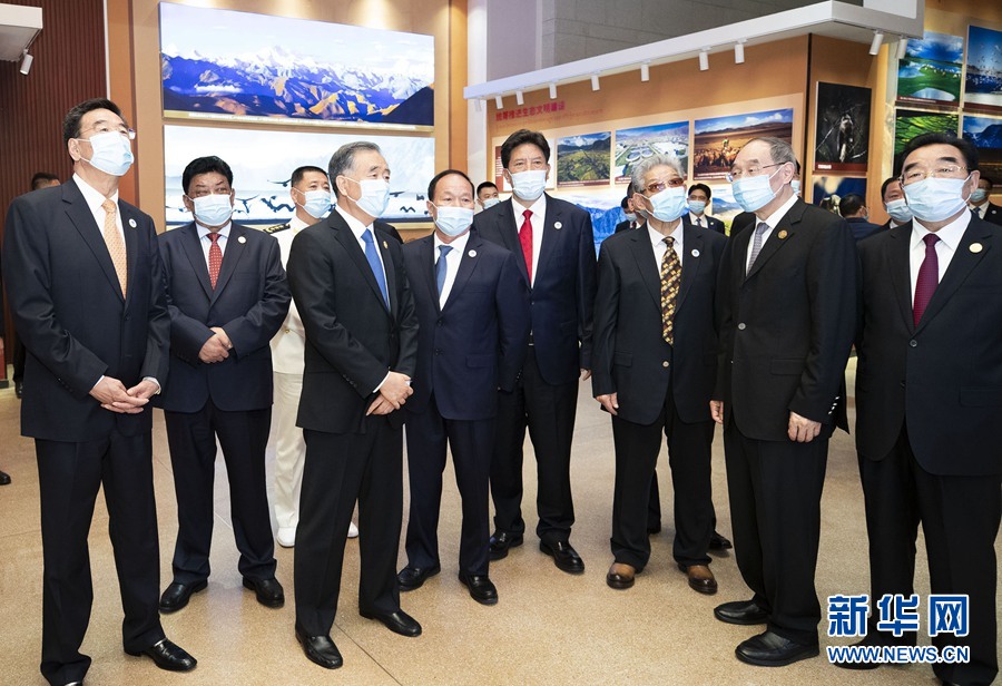 8月18日,以中共中央政治局常委、全国政协主席汪洋为团长的中央代表团飞抵拉萨,出席西藏和平解放70周年庆祝活动。这是汪洋率代表团全体成员来到西藏博物馆,出席《党的光辉照边疆 锦绣高原谱华章——西藏和平解放70周年成就展》开幕式并参观展览。新华社记者 黄敬文 摄