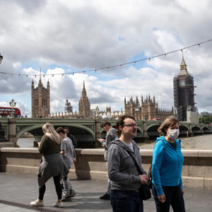 8月18日,人们走在英国伦敦的泰晤士河岸边。