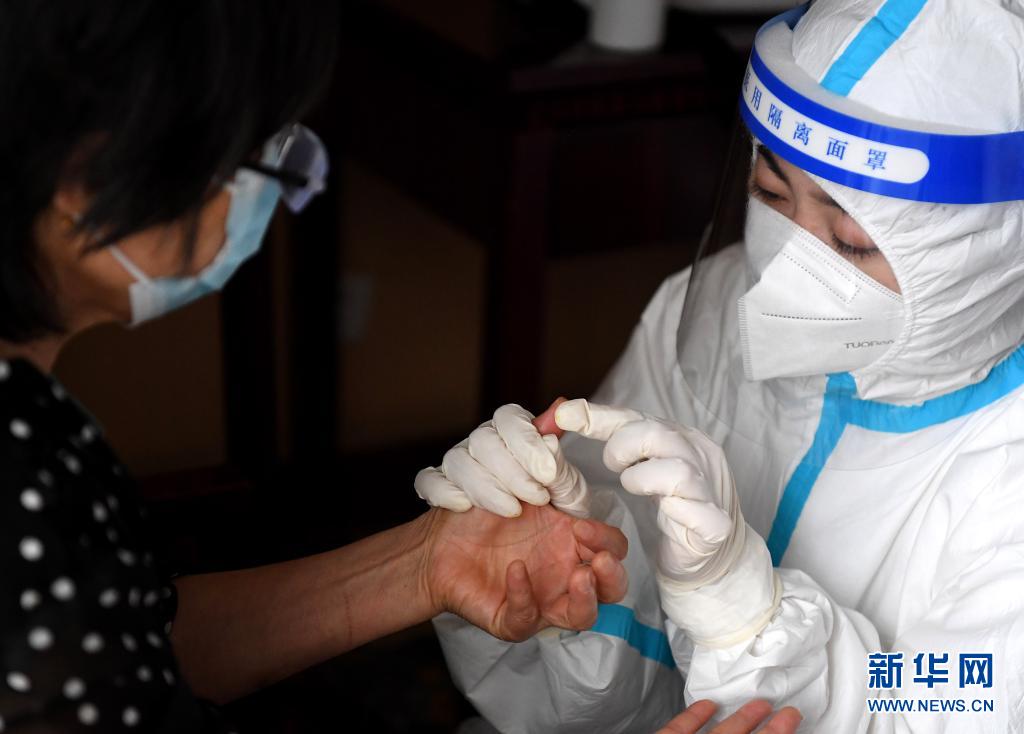 8月18日,在郑州市郑东新区豫鹰宾馆健康关爱中心的隔离房间里,王亚如在指导失眠的隔离人员做中医穴位按摩。新华社记者 李安 摄