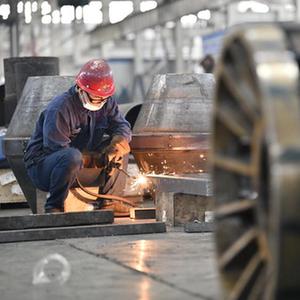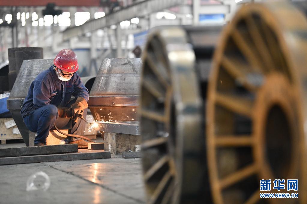 8月19日,位于玉田县的唐山东亚重工装备集团有限公司工人在加工大型传输设备零部件。