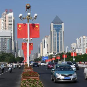 国庆节临近,广西南宁城市道路两边挂满国旗,洋溢着喜庆祥和的气氛。