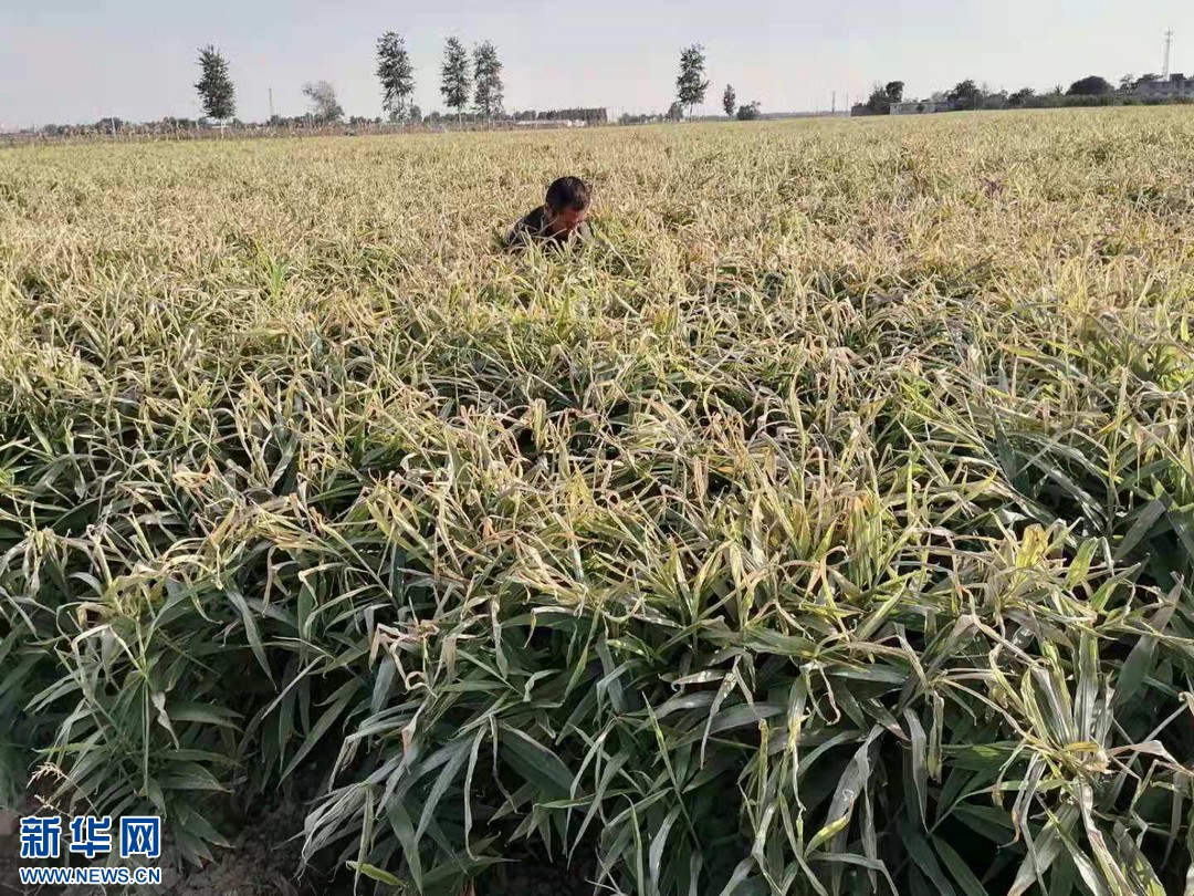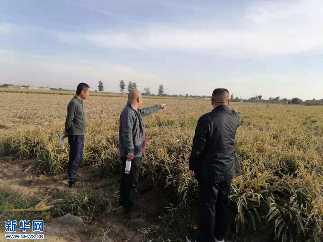 今年气候湿润,高温强照射的天气少,雨量充沛,很适合姜的生长。广大种植户丰收在望。石家庄市栾城区西营供销社通过各种渠道联系到山东的姜经营者,并把收购商请到了栾城农户地里进行现场考察,现场商谈收购事宜,拓宽农户姜的销售渠道。图为姜收购商在地里查看姜的长势(2021年10月22日摄)。新华网发 李小勇摄