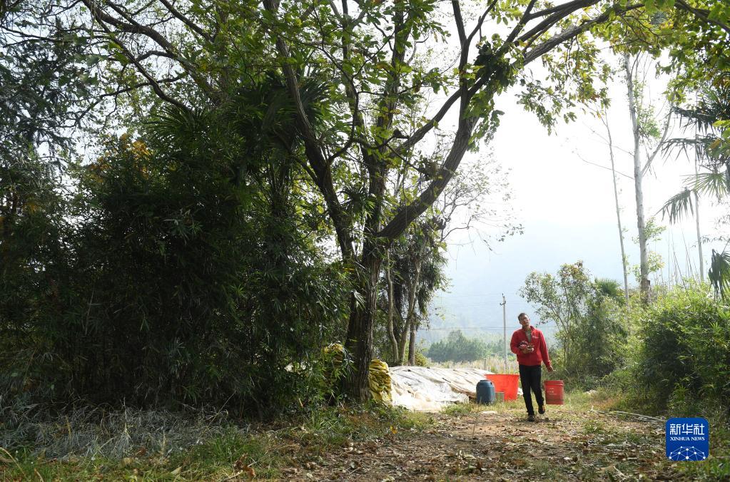 在广西灵川县灵田镇正义村,阳红星走在看护果园回来的路上(10月27日摄)。