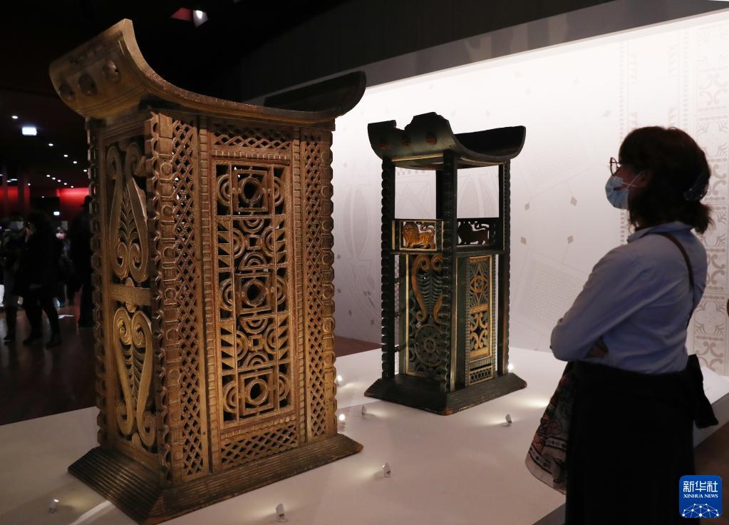 10月28日,一名女子在法国巴黎凯布朗利博物馆参观即将归还贝宁的文物。