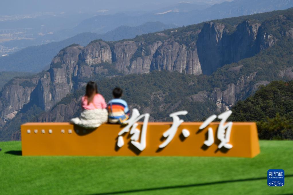 11月14日,游客在神仙居景区南天顶观景台游览。