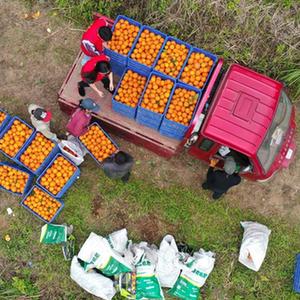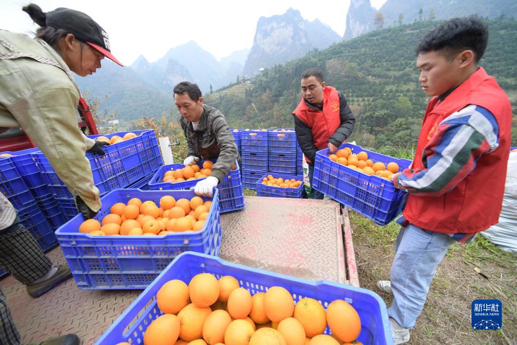 12月10日,村民和驻村干部在罗甸县龙坪镇顶访村脐橙种植基地搬运脐橙。