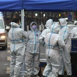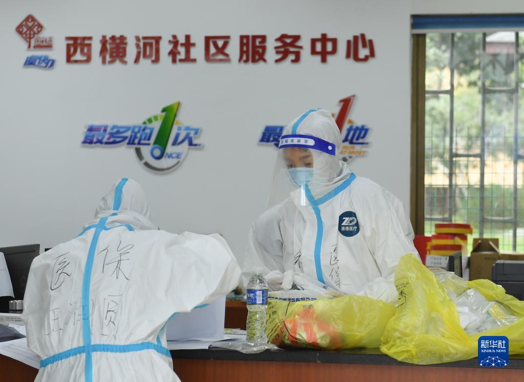 12月14日,在临时封控的百官街道西横河社区,工作人员为居民代购、分发药品等物资。