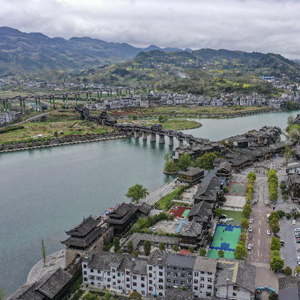这是3月22日拍摄的重庆市黔江区濯水古镇景区内的风雨廊桥(无人机照片)。