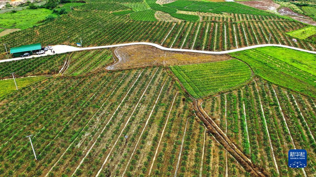 这是韦小东在融安县长安镇大坡村建设的“蚂蚁农业电商数字示范基地”(4月30日摄,无人机照片)。