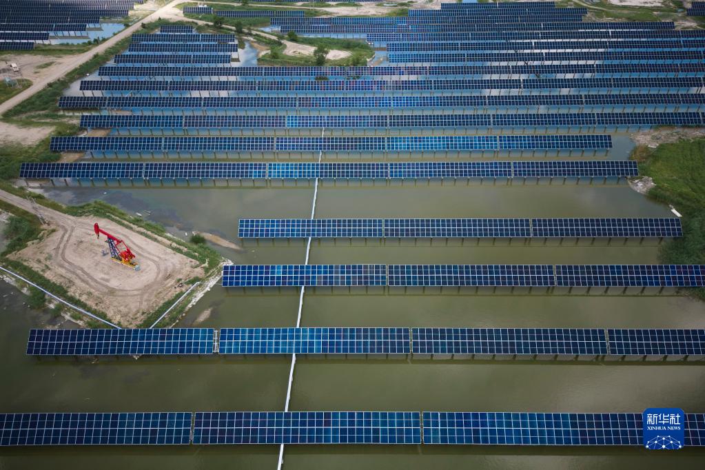 这是7月21日拍摄的大庆油田星火水面光伏项目(无人机照片)。