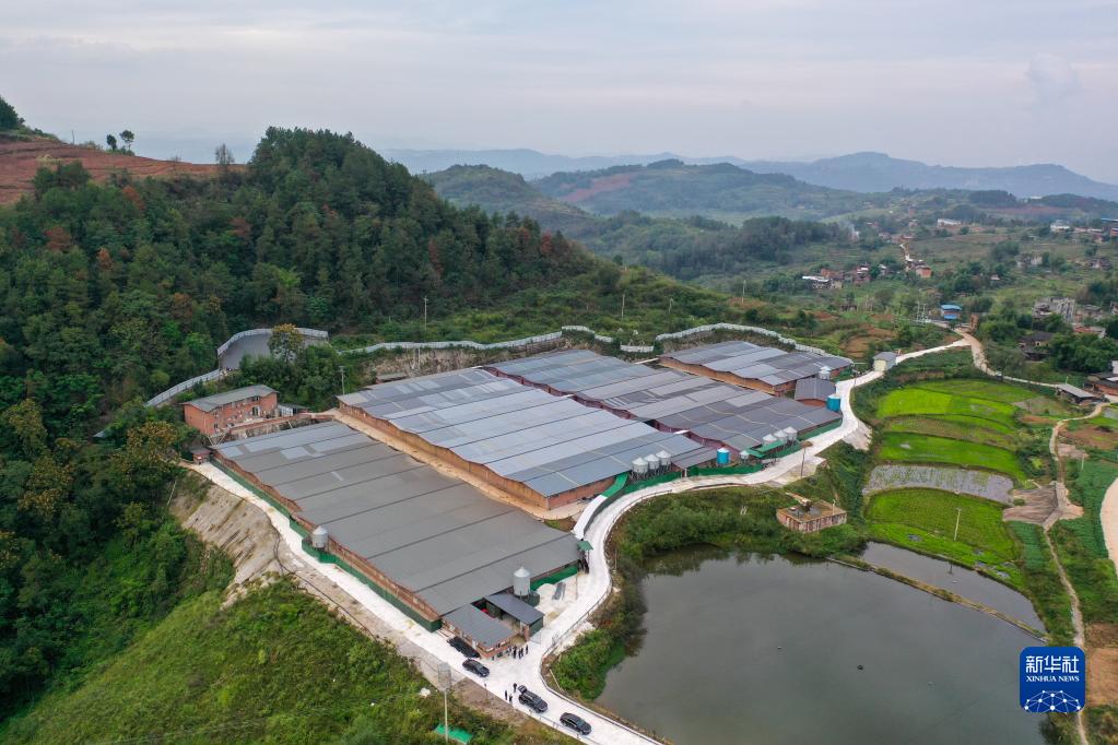 这是位于重庆市万州区龙沙镇黄金村的牧邦生态农业发展(重庆)有限公司(2022年10月10日摄,无人机照片)。该企业是2022年6月正式投产的一家生态猪养殖场,目前有1万多头猪。