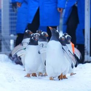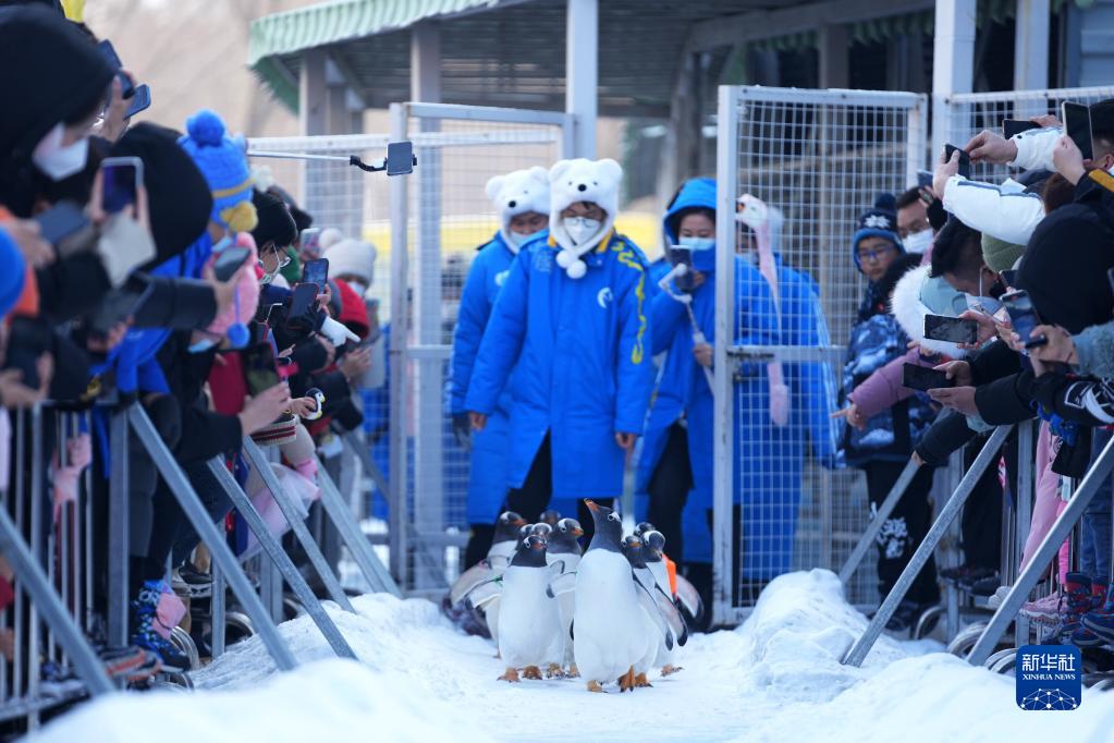 时下,“冰城”哈尔滨市正值冰雪旅游季。哈尔滨极地公园的企鹅每天都会外出“巡游”,吸引许多游客前来观赏。