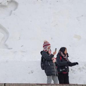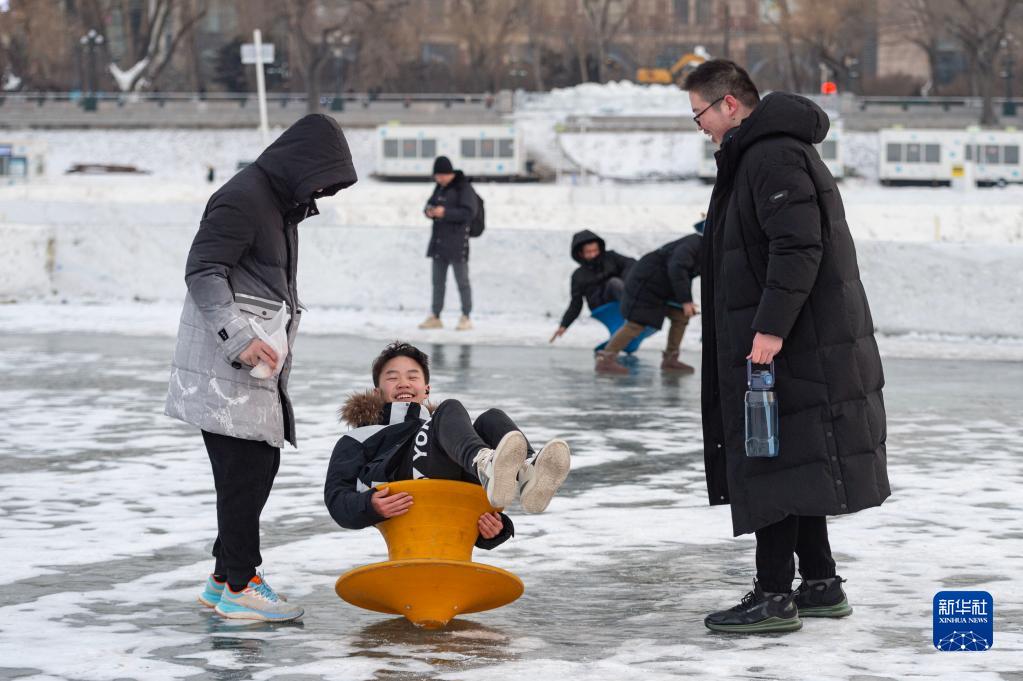 2月22日,游客在哈尔滨松花江冰雪嘉年华园区内游玩。
