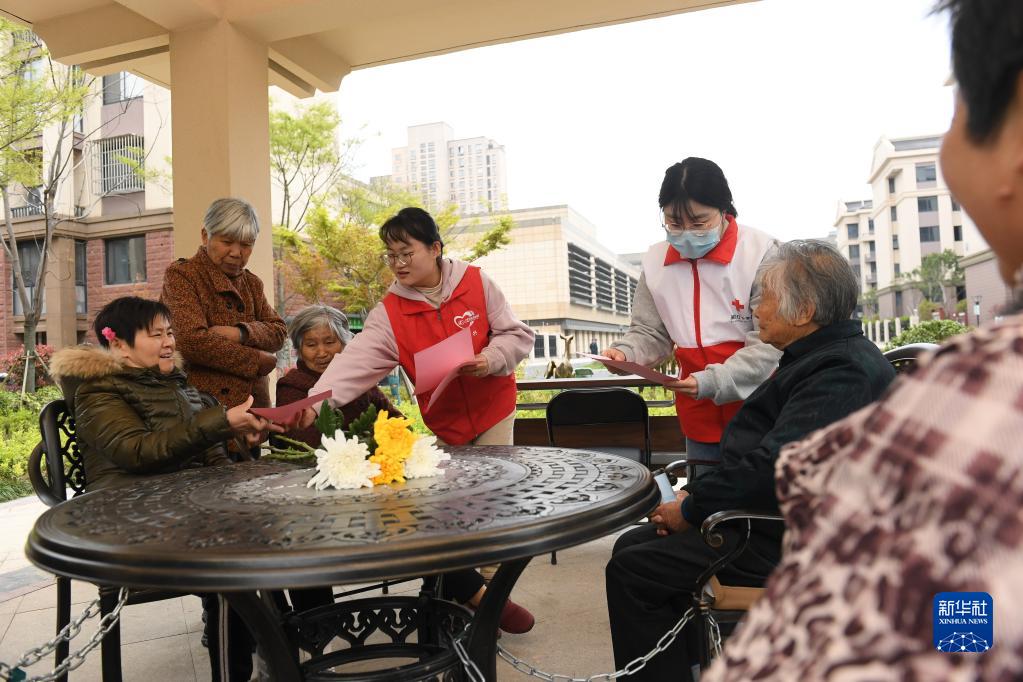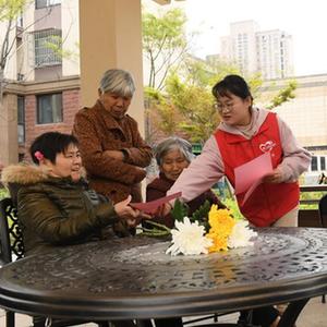3月29日,在环渚街道香樟湾社区,志愿者向居民发放文明祭扫倡议书。