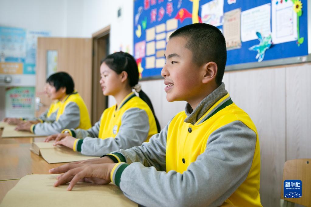 3月31日,重庆市特殊教育中心的视力障碍学生在教室内朗读古诗。