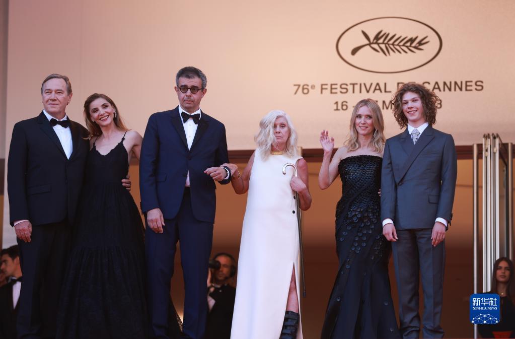 5月25日,在法国戛纳举行的第76届戛纳国际电影节上,法国导演凯瑟琳·布雷亚(右三)携主创踏上影片《去年夏天》首映礼红毯。