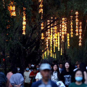 近日,沈阳市万泉公园打造的一条诗词漫道成为游客和市民的网红打卡地。每当夜幕降临,几十首古诗词彩灯在这条300余米道路的树梢枝头熠熠闪烁,以诗入景,一步一诗。